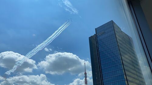 今日は朝から客先で仕事でした。 いよいよ今日は東京五輪の開会式ですね。開会式自体には全く興味がないのですが、興味のあるのはブルーインパルスの展示飛行。 一昨日のリハーサルの時も都内の事務所からちらっと見えましたが今日はたまたま仕事の現場が東…